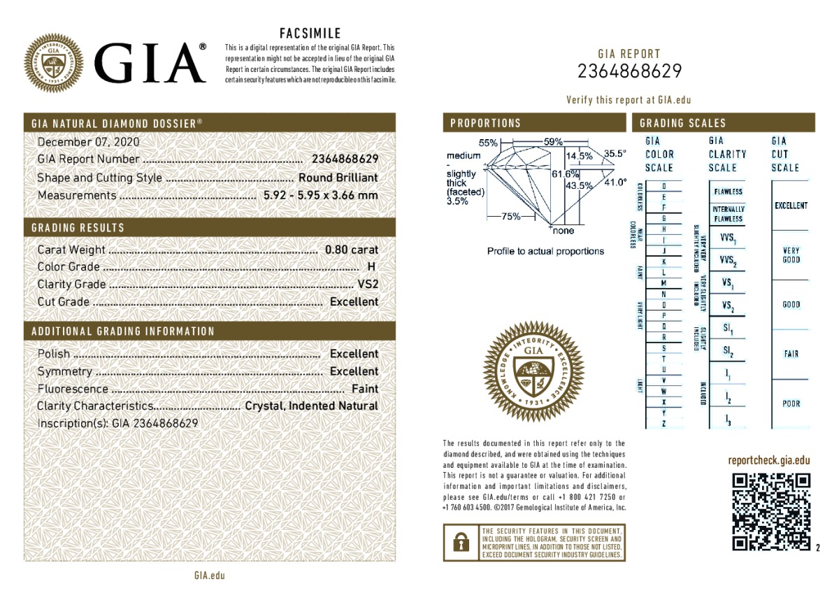 Round Shape, 0.80 Carat, H Color, VS2 Clarity