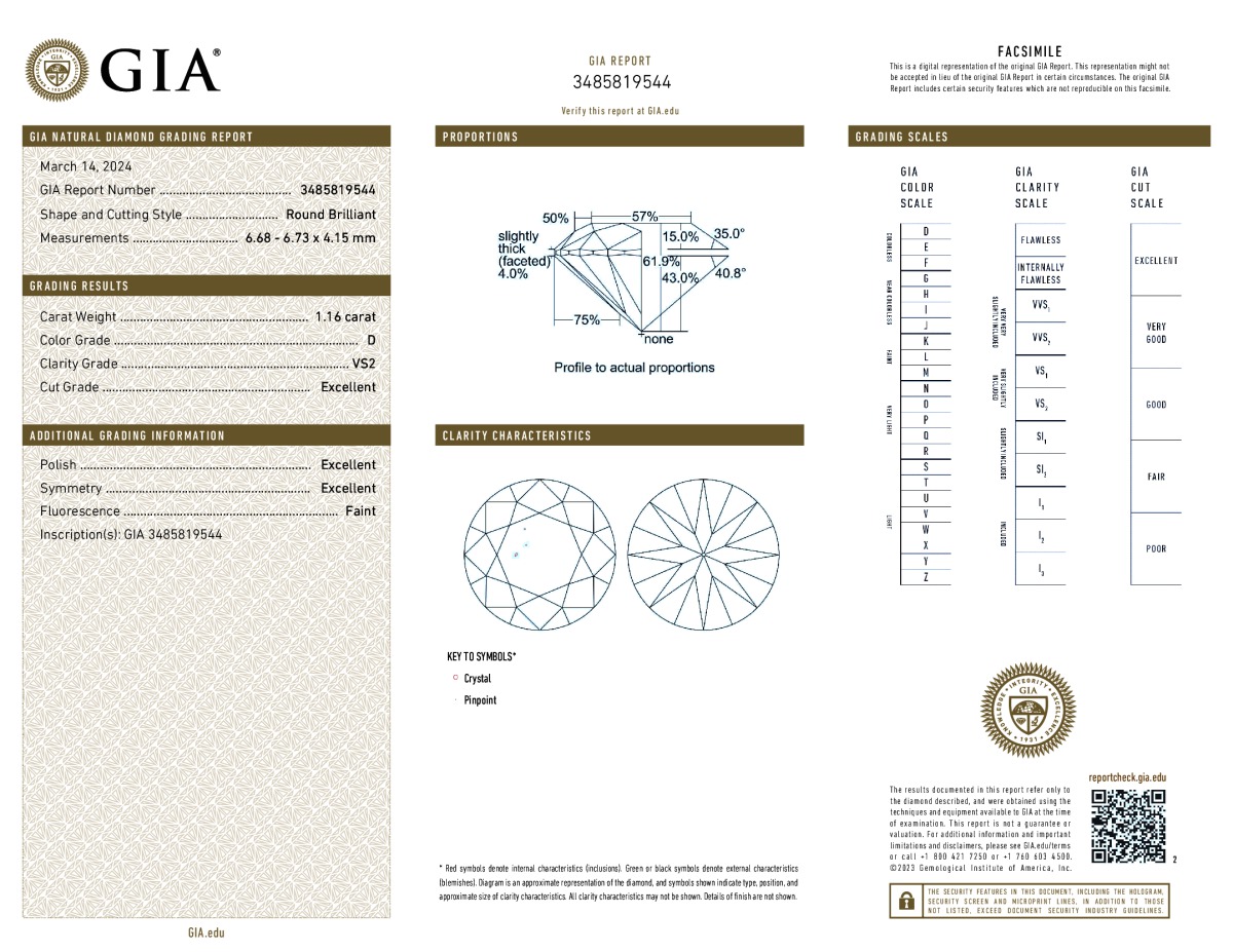Round Shape, 1.16 Carat, D Color, VS2 Clarity