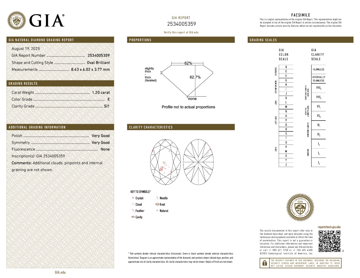 Oval Shape, 1.20 Carat, E Color, SI1 Clarity