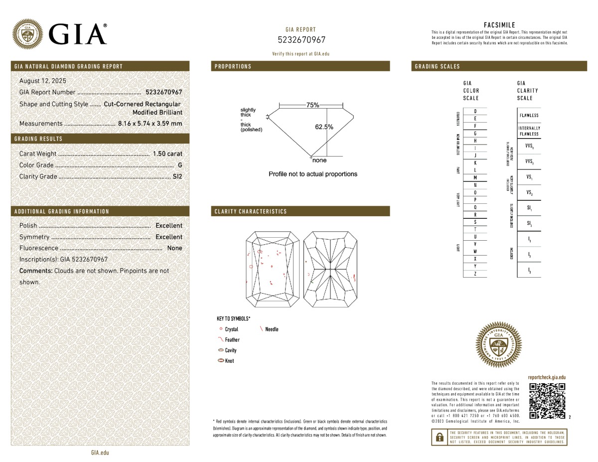 Radiant Shape, 1.50 Carat, G Color, SI2 Clarity
