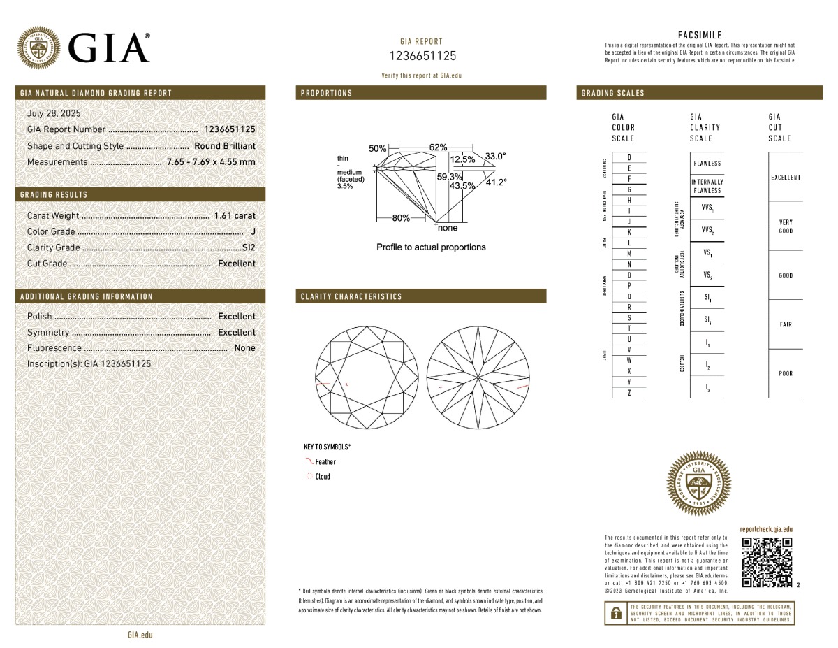 Round Shape, 1.64 Carat, H Color, SI1 Clarity