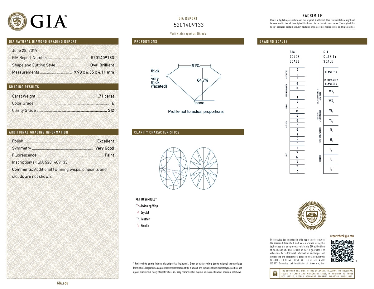 Oval Shape, 1.71 Carat, E Color, SI2 Clarity