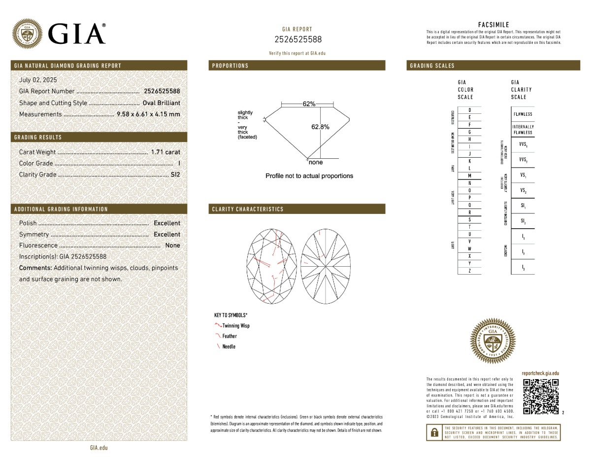 Oval Shape, 1.71 Carat, I Color, SI2 Clarity