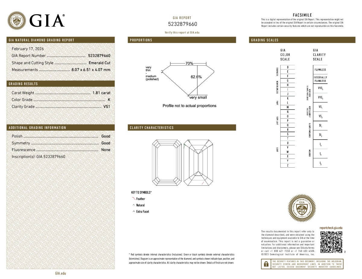 Emerald Shape, 2.02 Carat, I Color, VS1 Clarity