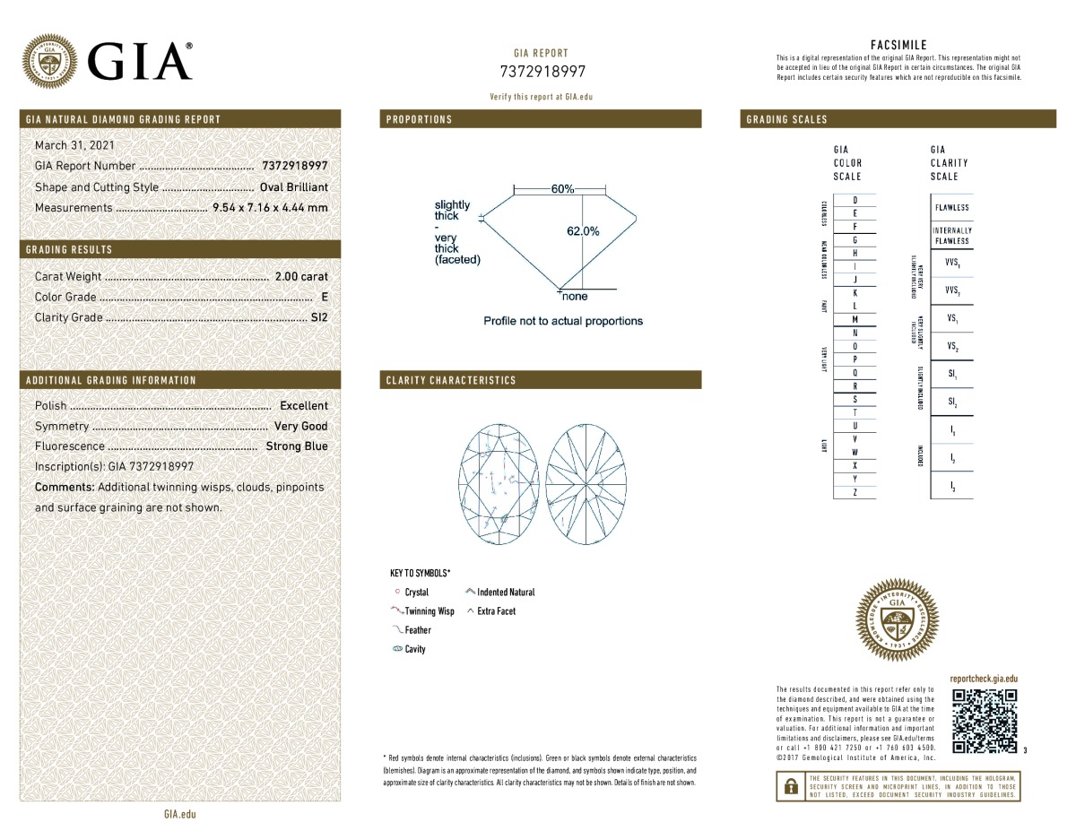 Oval Shape, 2.00 Carat, E Color, SI2 Clarity