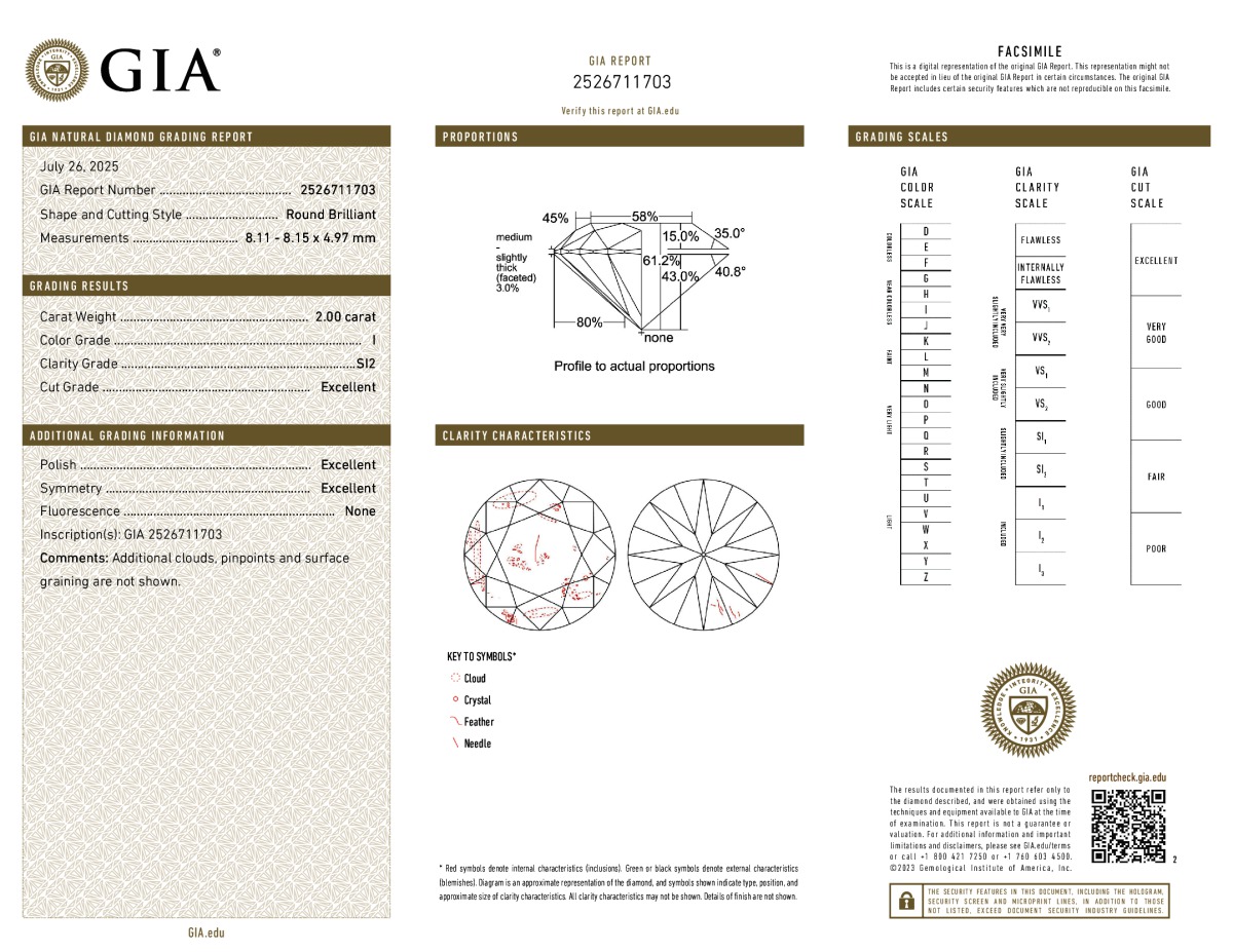 Round Shape, 2.00 Carat, I Color, SI2 Clarity
