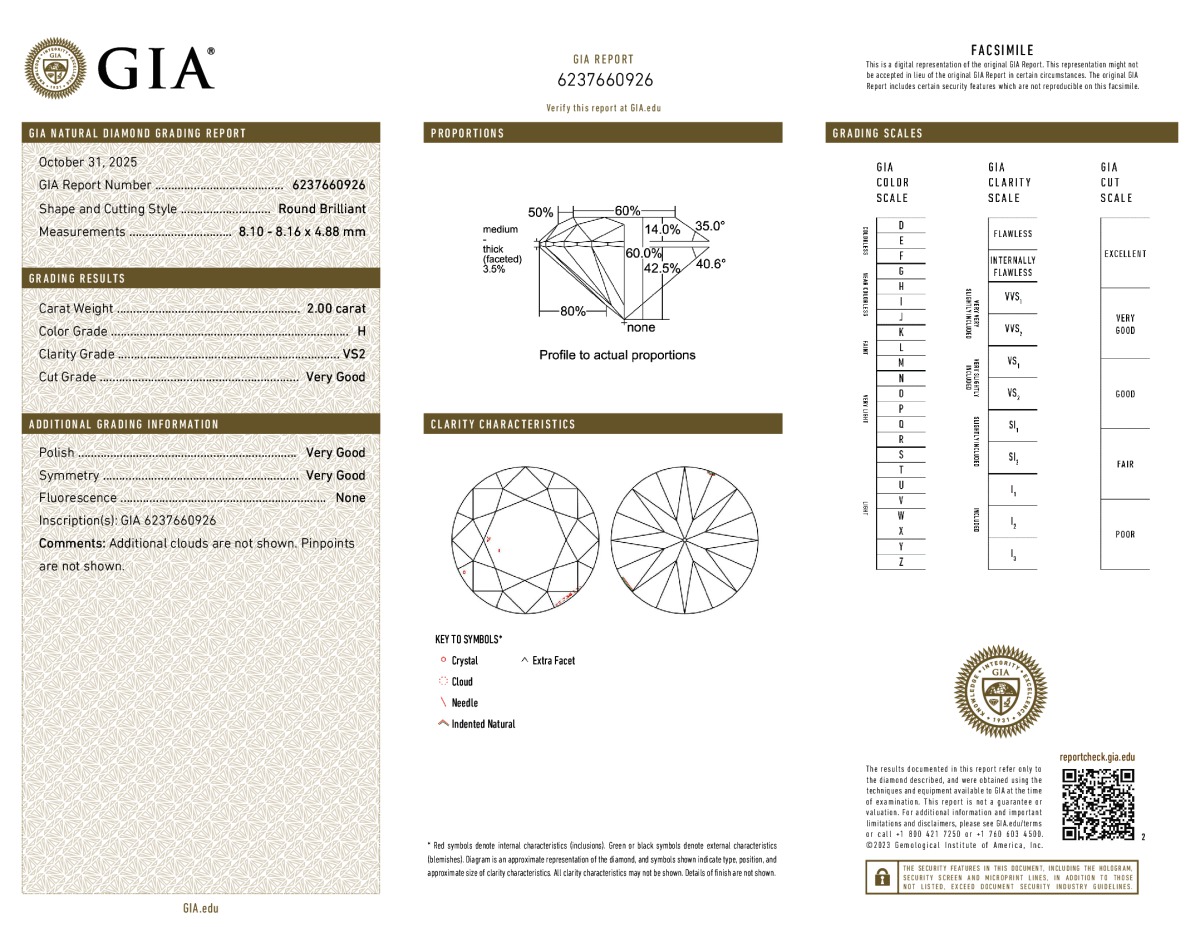 Round Shape, 1.70 Carat, F Color, VS2 Clarity
