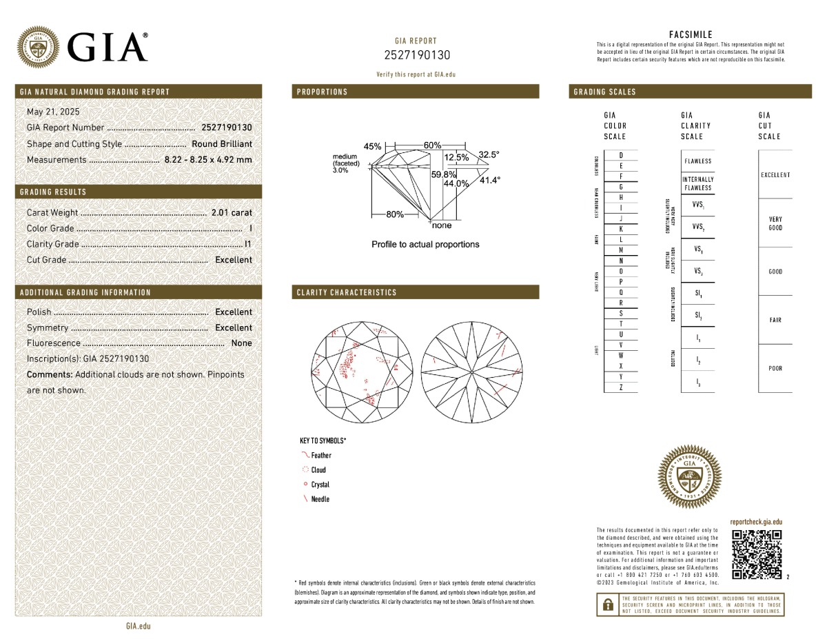 Round Shape, 2.21 Carat, G Color, I1 Clarity