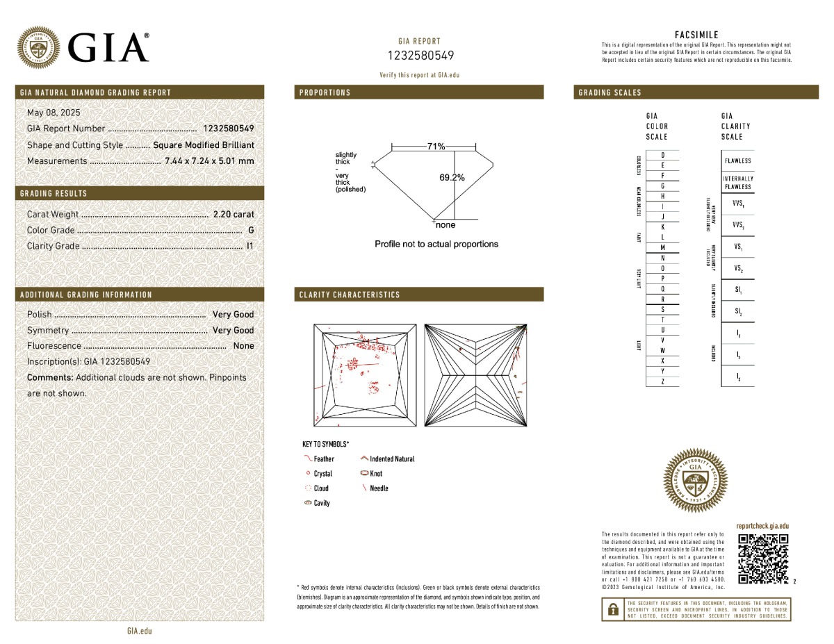Princess Shape, 2.55 Carat, H Color, SI2 Clarity