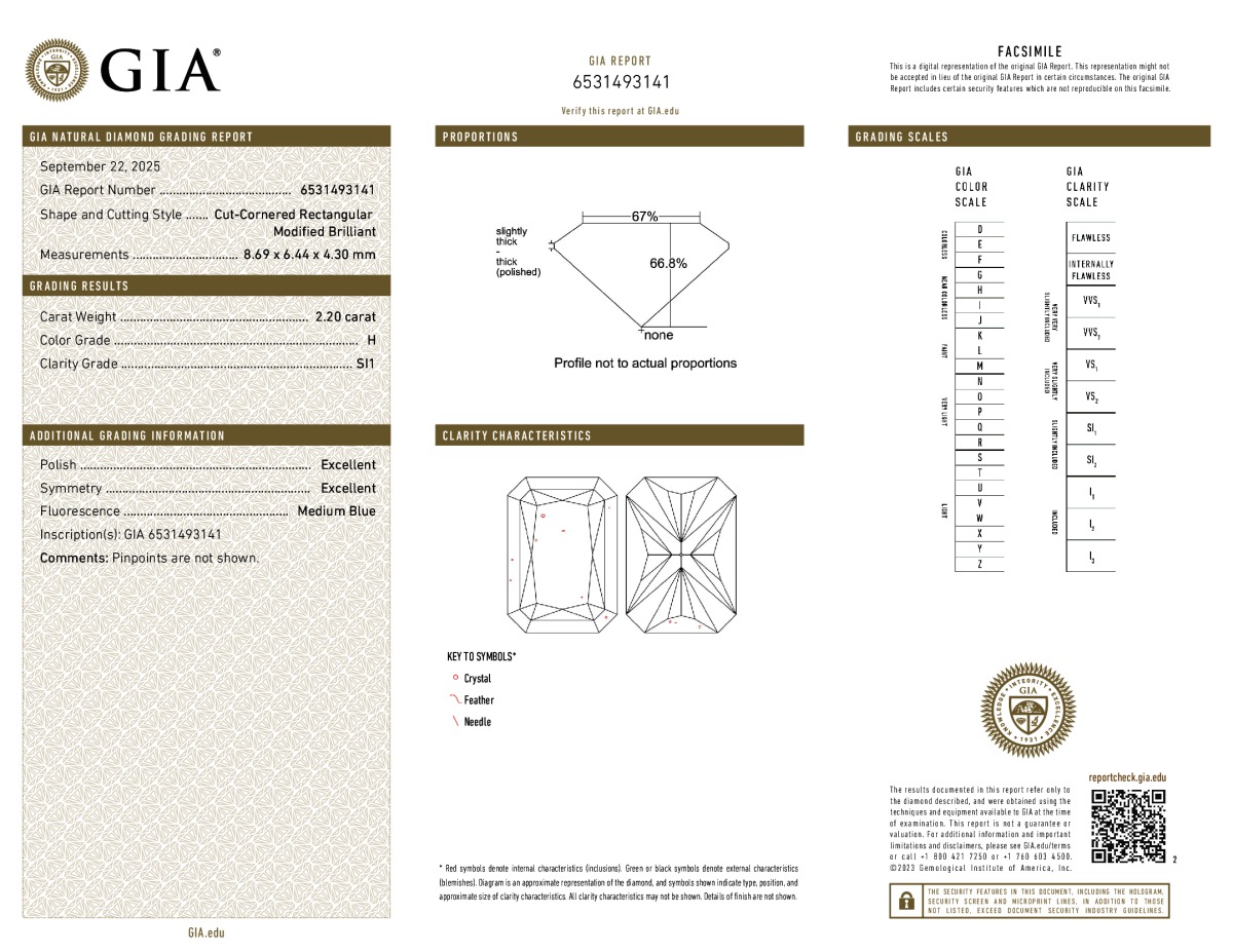 Radiant Shape, 2.01 Carat, G Color, SI1 Clarity