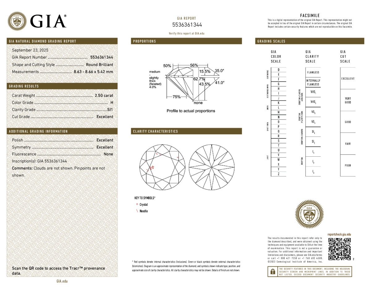 Round Shape, 2.69 Carat, G Color, SI1 Clarity