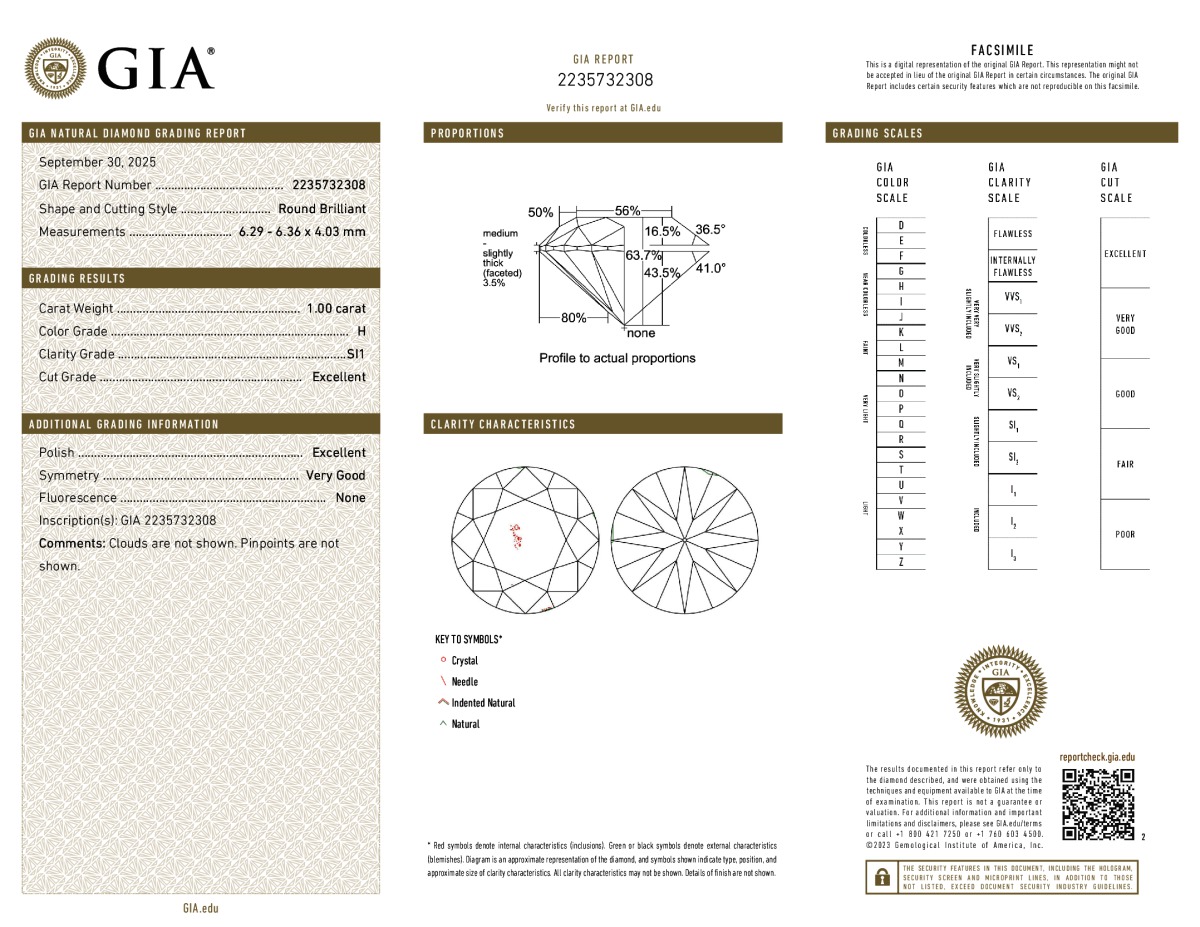 Round Shape, 0.51 Carat, H Color, SI1 Clarity