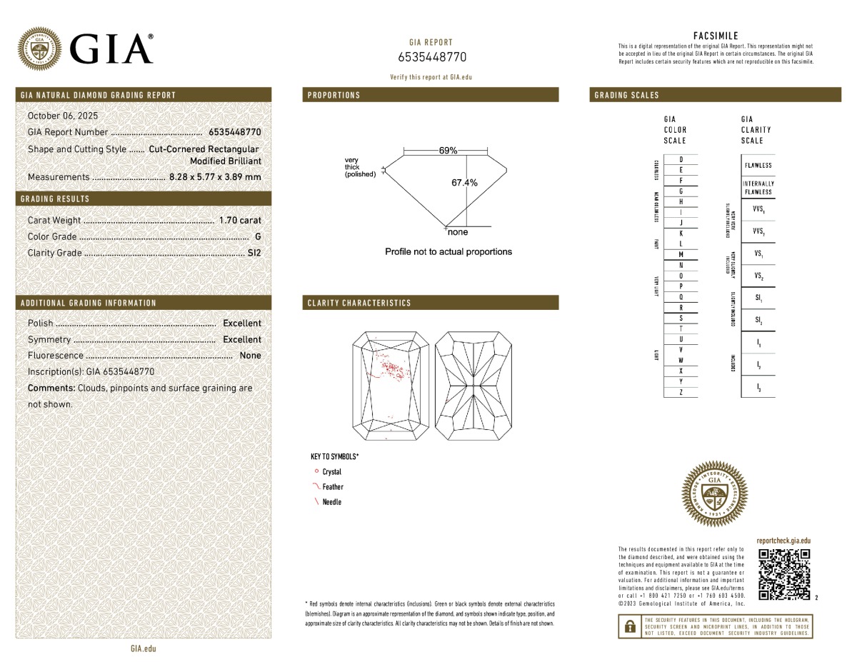 Radiant Shape, 1.70 Carat, G Color, SI2 Clarity